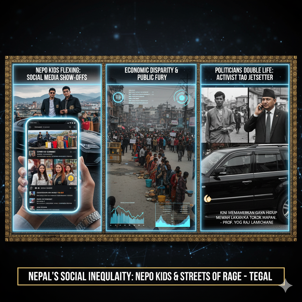 Tegal – 1miliarsantri.net : Di tengah kondisi ekonomi yang masih serba sulit, generasi muda Nepal kini semakin geram dengan gaya hidup mewah keluarga pejabat dan politisi. Fenomena flexing alias pamer harta yang dilakukan anak-anak elite politik menjadi salah satu pemicu gelombang protes besar di negara pegunungan Himalaya itu.