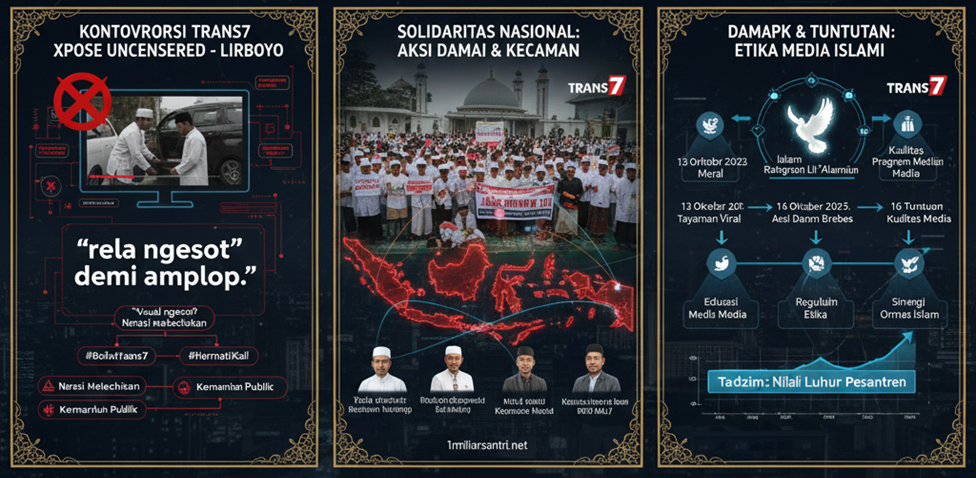 Tegal – 1miliarsantri.net : Tayangan Xpose Uncensored Trans7 yang disiarkan pada Senin, 13 Oktober 2025, menuai kecaman luas setelah dinilai melecehkan Pondok Pesantren Lirboyo Kediri, salah satu pesantren tertua dan paling berpengaruh di Indonesia. Kontroversi ini memicu gelombang protes nasional dan tagar #BoikotTrans7 yang viral di media sosial.